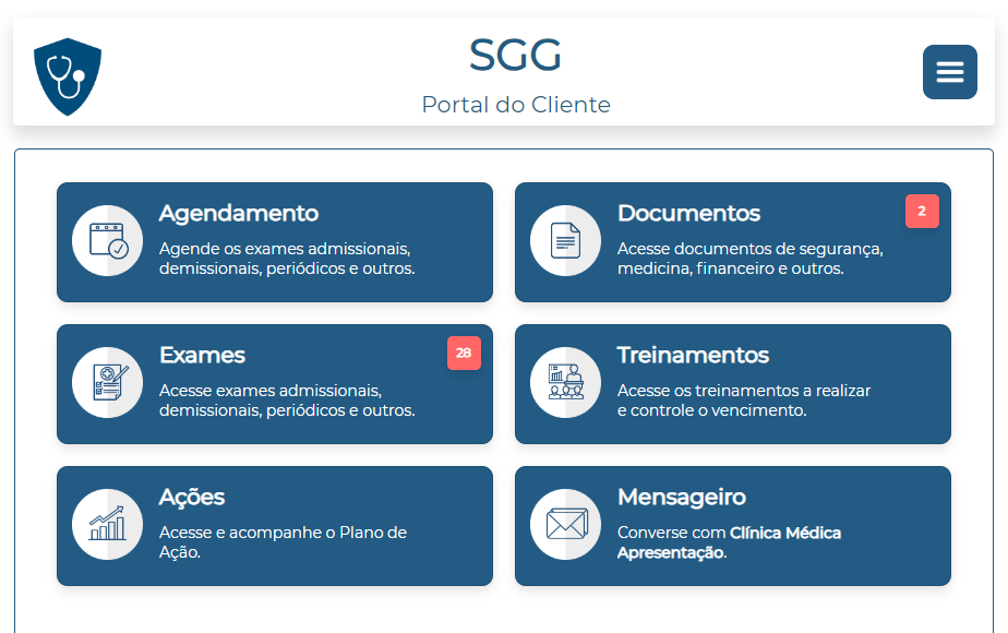 A dificuldade em compartilhar documentações com os clientes é uma das maiores dores dos prestadores de serviço em SST. O Agendamento de Exames por telefone e a solicitação de documentações já prontas (PGR, ASO, PCMSO…), acumulam tarefas que apesar de simples, tomam tempo da equipe. Agora, o seu cliente pode acessar tudo com apenas alguns cliques.