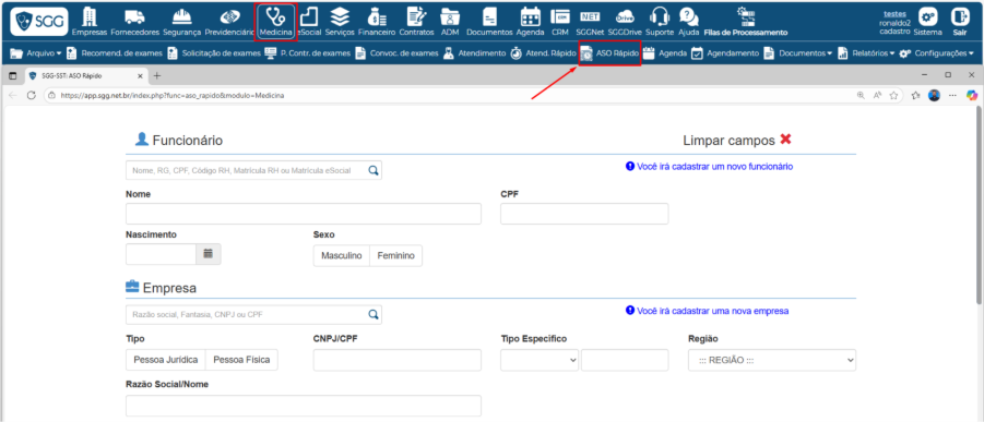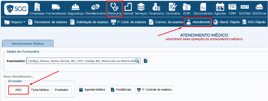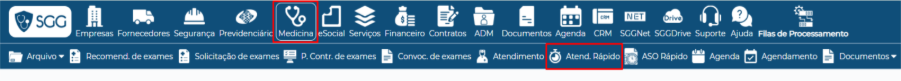 Os Médicos que realizam o atendimento diretamente no SGG podem emitir o ASO em Medicina >> Atendimento Rápido.