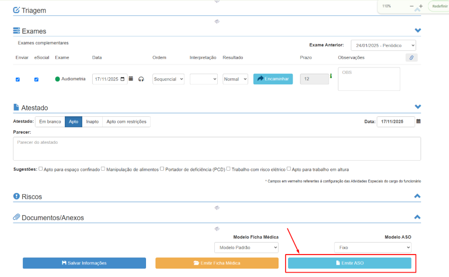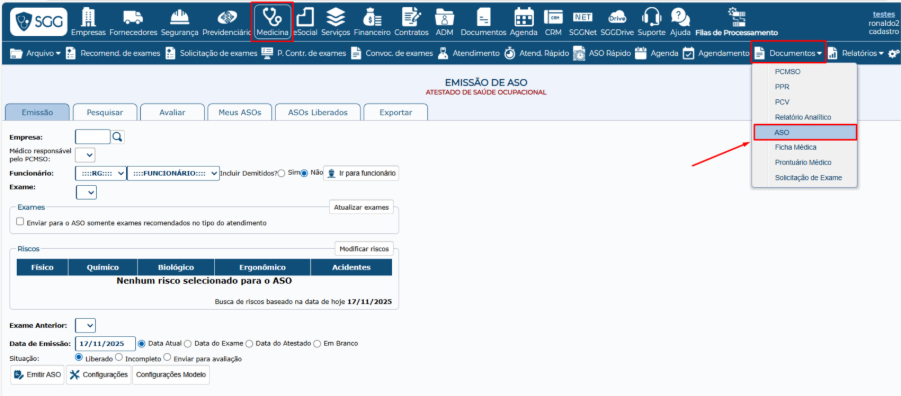 O ASO também pode ser emitido em Medicina >> Documentos >> ASO.