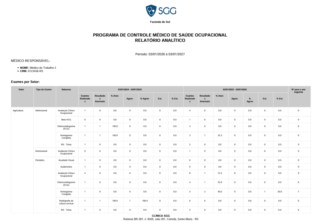 No SGG, esse relatório é gerado automaticamente a partir dos exames, ASOs e atendimentos realizados, com apoio de IA para a discussão dos resultados, permitindo que o Médico do Trabalho revise e finalize de forma ágil.