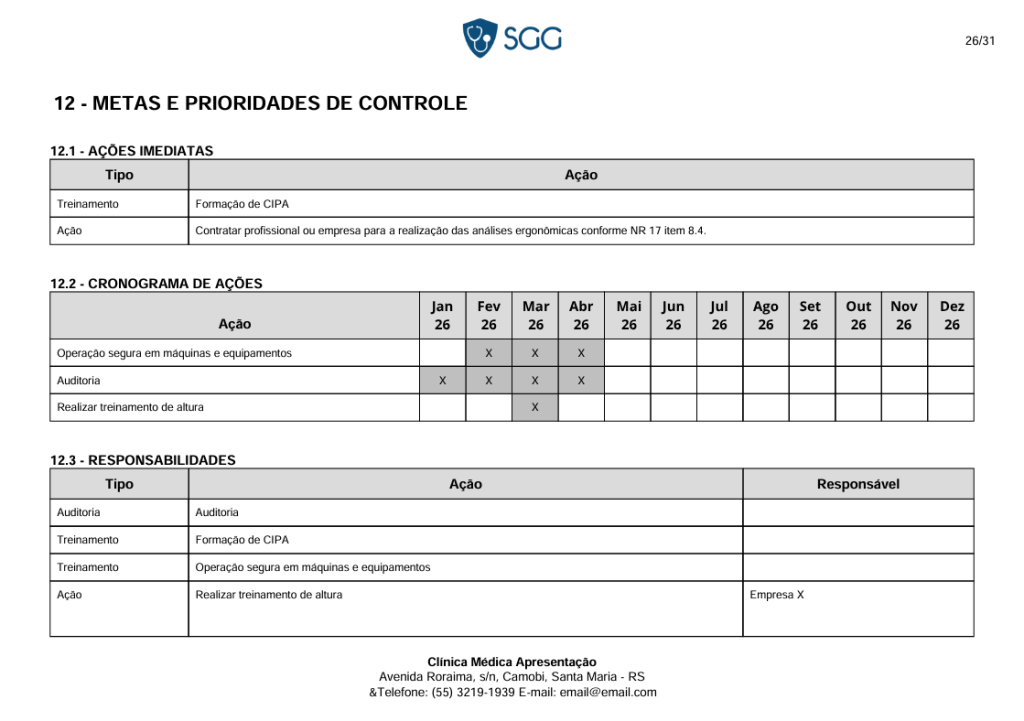 No SGG, esses planejamentos podem ser estruturados no PGR, PCMSO e planos de ação, garantindo um ciclo anual bem-organizado.
