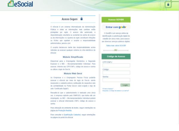 Sabendo disso, caminhamos para a página inicial do eSocial. Para o login, é necessário ter o Certificado Digital da empresa. Por isso, ela mesma poderá realizar o acesso ou o seu contador responsável (que normalmente já possui).