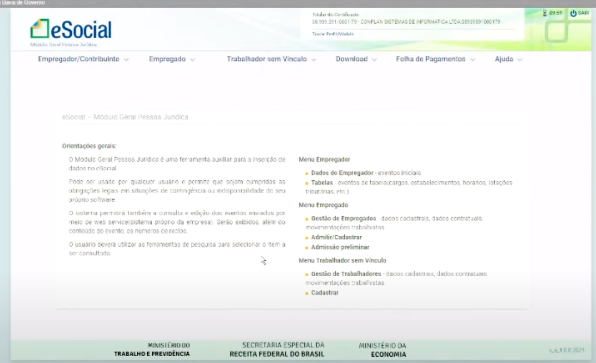 Aproveitamos para sinalizar que a consulta de outros tipos de informação como tabelas, rubrica e a respeito dos dados do empregado, também podem ser encontradas na aba “Empregador/Contribuinte”, sugerimos que você aproveite o momento para conhecer ainda mais a plataforma.