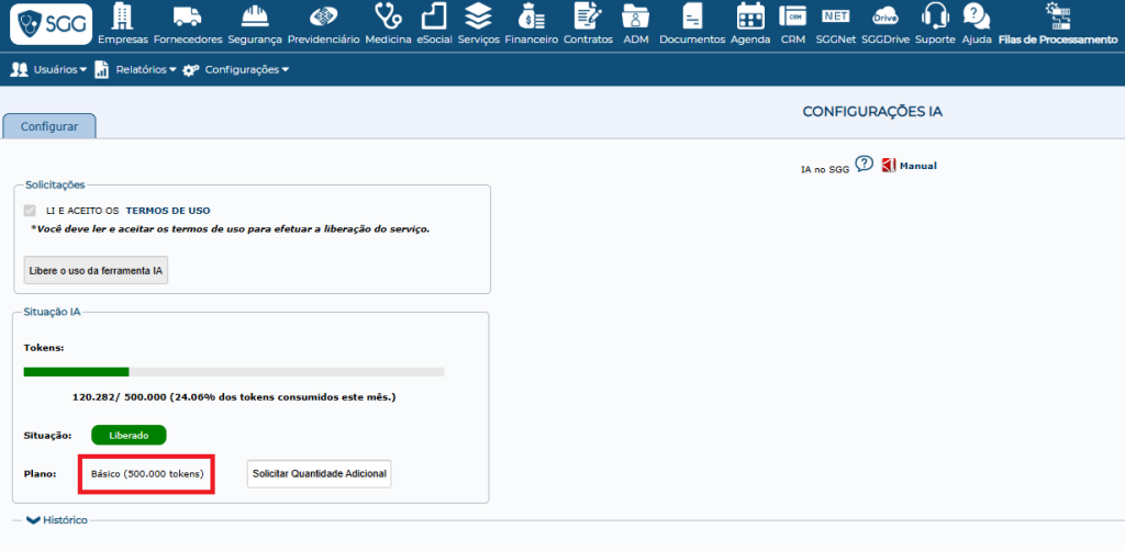 Embora faça parte do SGG IA, o uso do Gaudêncio não consome tokens, ou seja, pode ser utilizado à vontade, sem custo adicional.