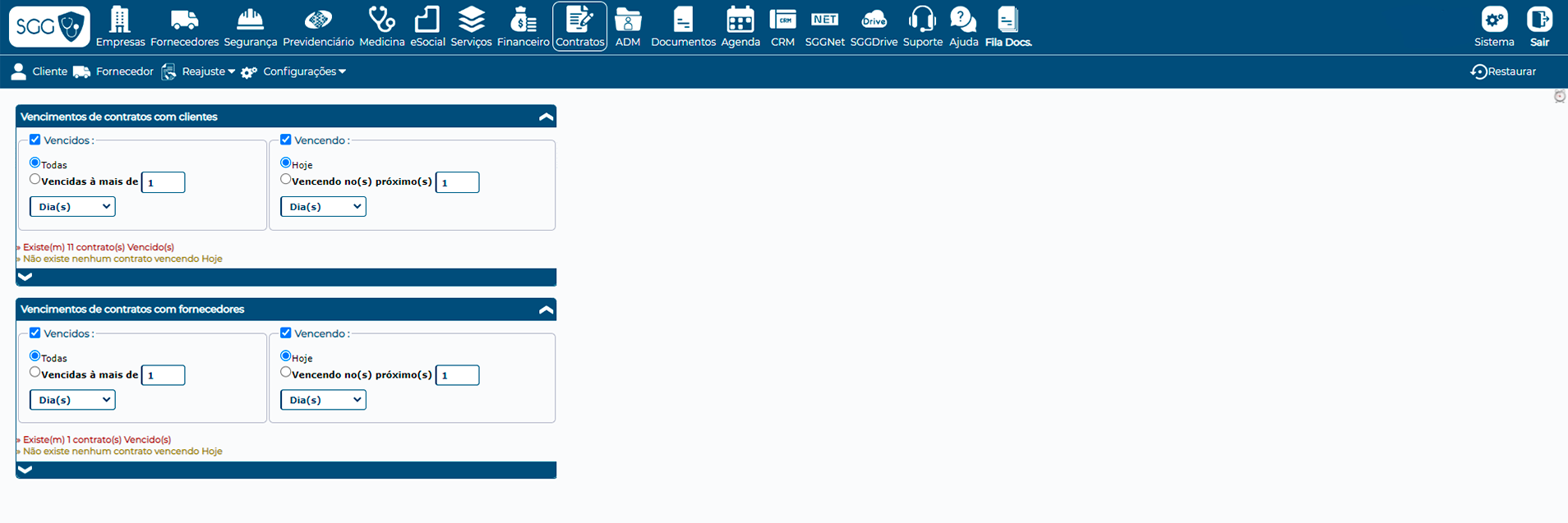 A gestão de vencimentos, renovações, cancelamentos e aditivos e anexos pode ser toda realizada pelo SGG, dando relatórios e alertas ao usuário de forma fácil e possibilitando uma boa gestão de contratos para sua empresa.
