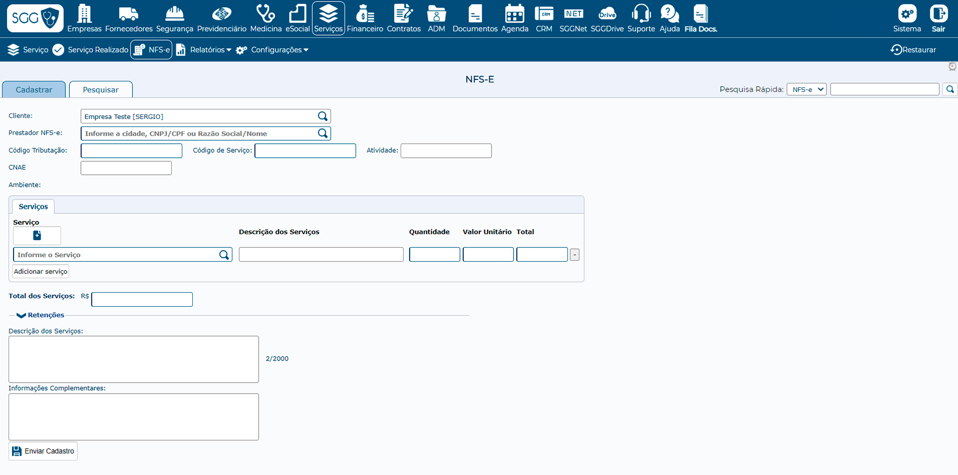 O sistema permite emissão de Nota Fiscal de Serviços Eletrônica (NFS-e) para mais de 1.600 municípios. A emissão da nota é realizada diretamente pelo sistema, individualmente ou em lote. Essa integração permite redução de dezenas de horas no faturamento, visto que todos os dados de cliente, do serviço, retenções e demais informações necessárias para a NF já estão dentro do sistema. O SGG faz toda ponte entre a sua empresa e a prefeitura, tornando o processo transparente e sem necessidade de sair do sistema.