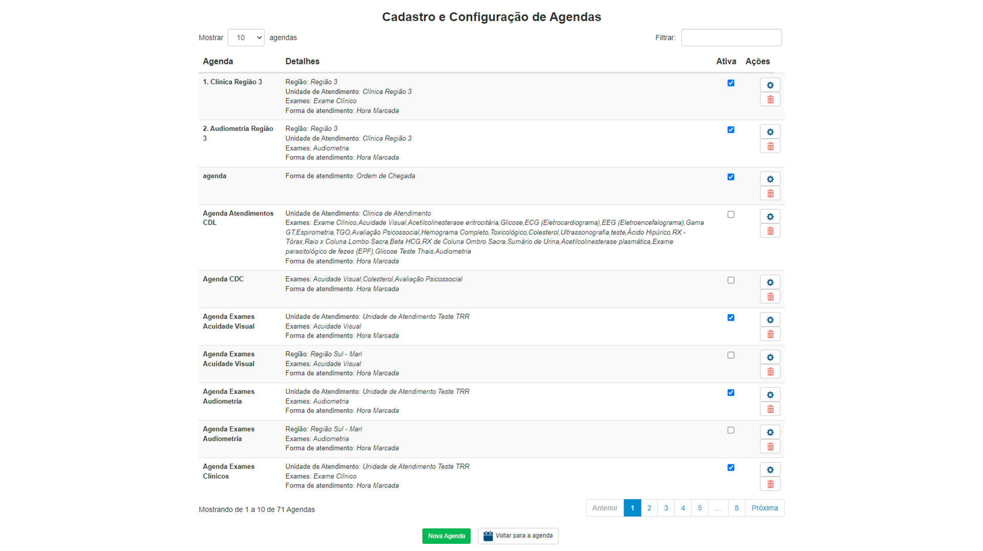 Como funciona o agendamento? O operador deve acessar o módulo ADM do software da SGG, clicar em arquivo e depois em unidade de atendimento. Em seguinda, é preciso clicar na aba de atendimento e cadastrar as unidades onde os exames serão feitos. Cada unidade deve ser vinculada a uma região.