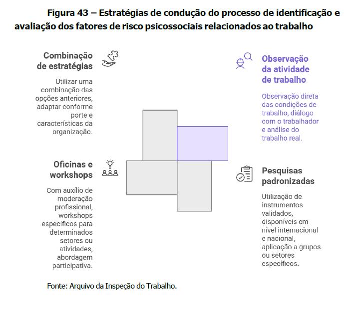 O Manual reconhece que não existe uma única estratégia obrigatória para conduzir a identificação e avaliação dos fatores de risco psicossociais.