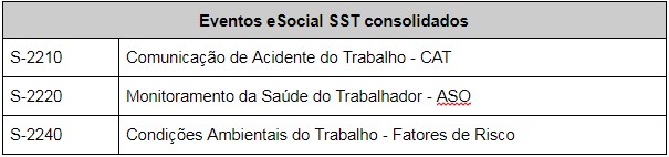 No consolidado, agora os eventos de SST serão compostos por apenas 3: