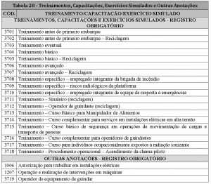 Apesar do evento S-2245 dos Treinamentos e Capacitações ter sido excluído, a tabela dos treinamentos ainda se manteve no novo layout beta disponibilizado. Anteriormente eles estavam na tabela 29, e agora fazem parte da tabela 28 com considerável redução (ver imagem abaixo).
