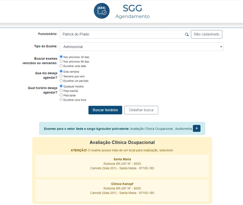 Permite que o cliente realize o agendamento de exames clínicos, evitando trocas constantes de mensagens com a clínica.