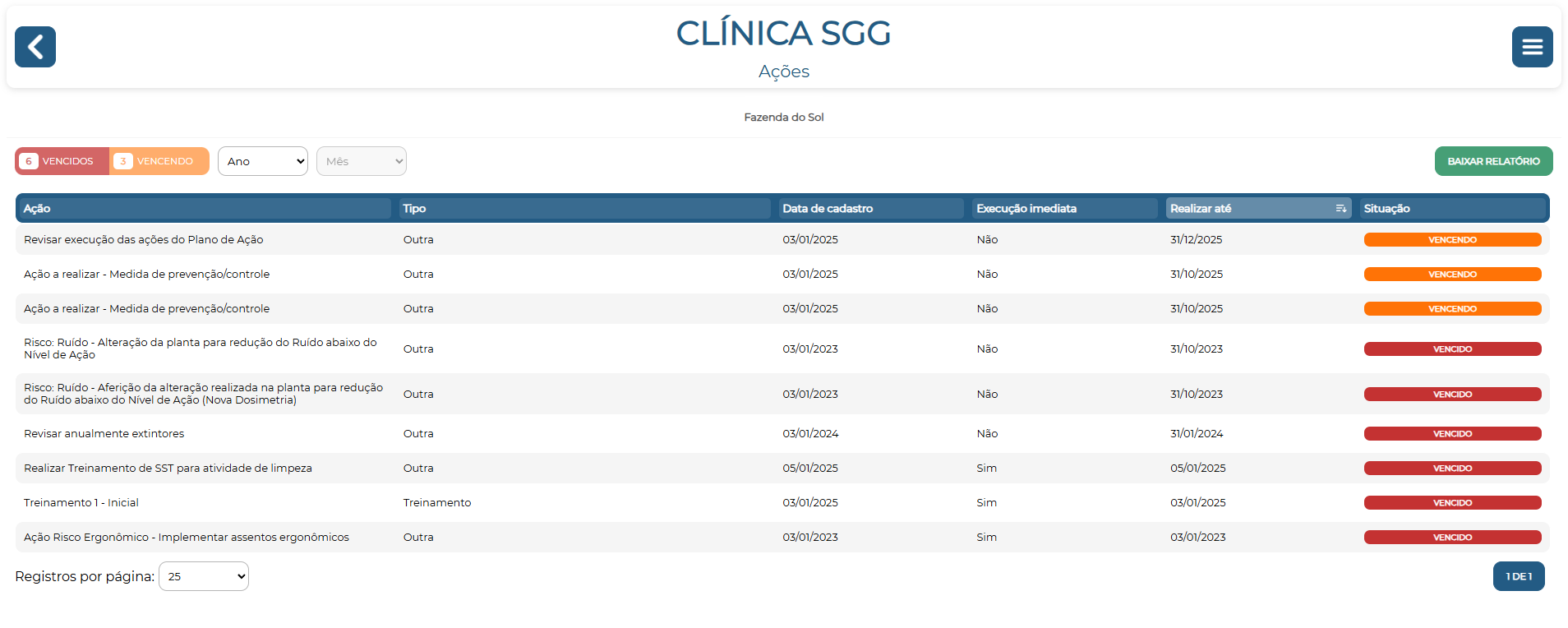 Traz as ações previstas no Plano de Ação, permitindo ao cliente acompanhar prazos e responsáveis.