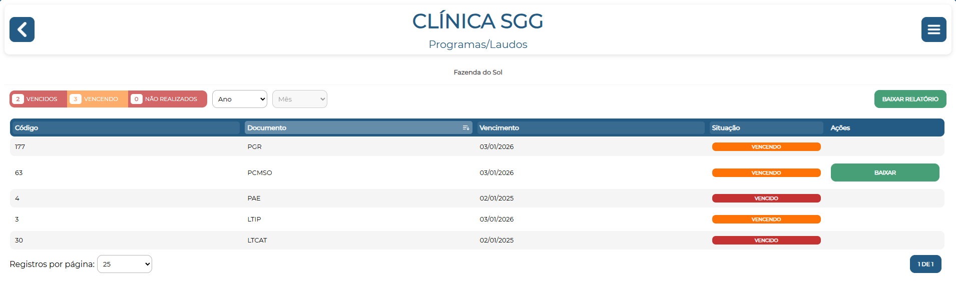 Nova funcionalidade que permite acessar documentos como PGR, LTCAT, LTP, PCMSO e PAE, além de visualizar seus status (vencido ou vencendo) com cores sinalizadoras.