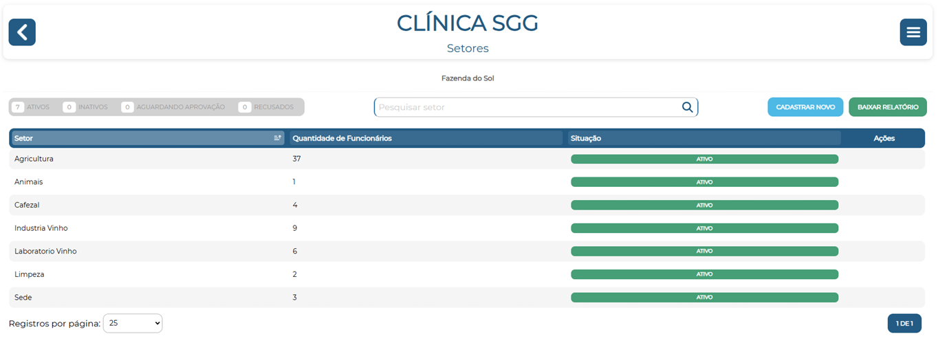 Agora, os clientes podem visualizar e cadastrar setores diretamente pelo Portal. É possível acompanhar quais setores estão ativos ou aguardando aprovação da clínica, mantendo a estrutura organizacional sempre atualizada e eliminando trocas manuais de planilhas ou e-mails.